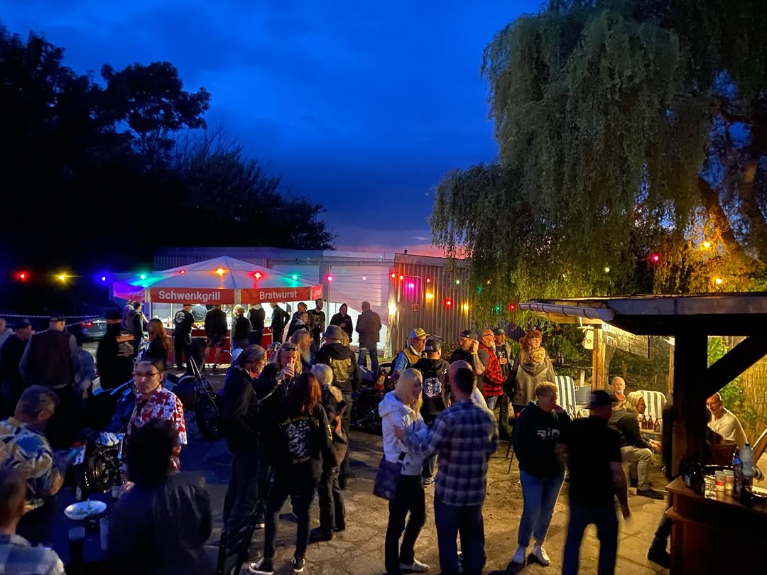 Der Platz war perfekt vorbereitet. Wer zelten wollte, fand direkt einen kleinen, gemütlichen Campground. Musik aus der Dose, ordentlich Dithmarscher Bier auf den Tischen und eine Grillbude, die alles hergab, was der Hunger nach einer langen Anreise verlangte. Von Grillwurst bis Hot Dogs. Hier ging niemand hungrig schlafen.