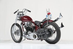Es gibt viele Maschinen, die ihn geprägt haben. In seiner Erinnerung taucht sofort Kevin Gregors türkisgrüne Shovelhead auf… ein Bike, das einen bleibenden Eindruck hinterließ. Dazu kommen die Arbeiten von Größen wie Max Schaaf und Rod Mangles. Chopper-Ikonen, deren Handschrift man sofort erkennt und die bis heute den Maßstab für Stil und Haltung setzen. Für Andy waren sie nicht nur Vorbilder, sondern auch Wegweiser, wohin die Reise gehen kann.